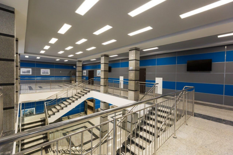 На втором этапе строители возвели спальный корпус площадью 9,5 тыс. м2, ледовый каток, бассейн, тир, крытый стадион и специальные спортивные площадки на территории.